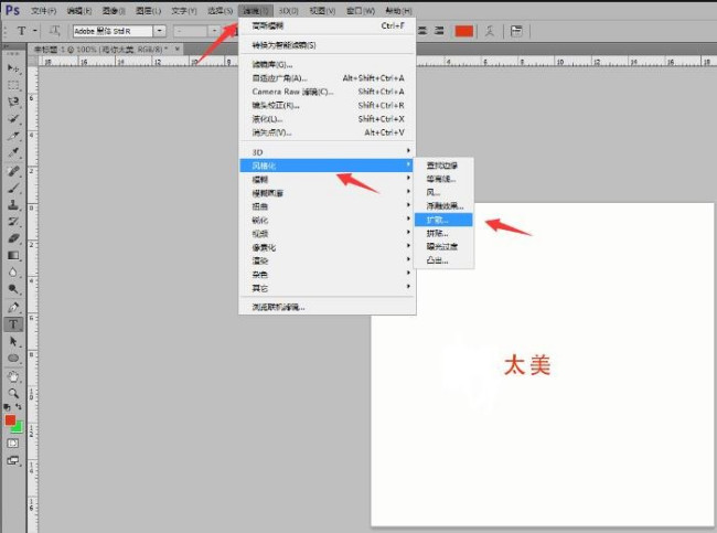 3、在菜单栏中选择滤镜→风格化→扩散。