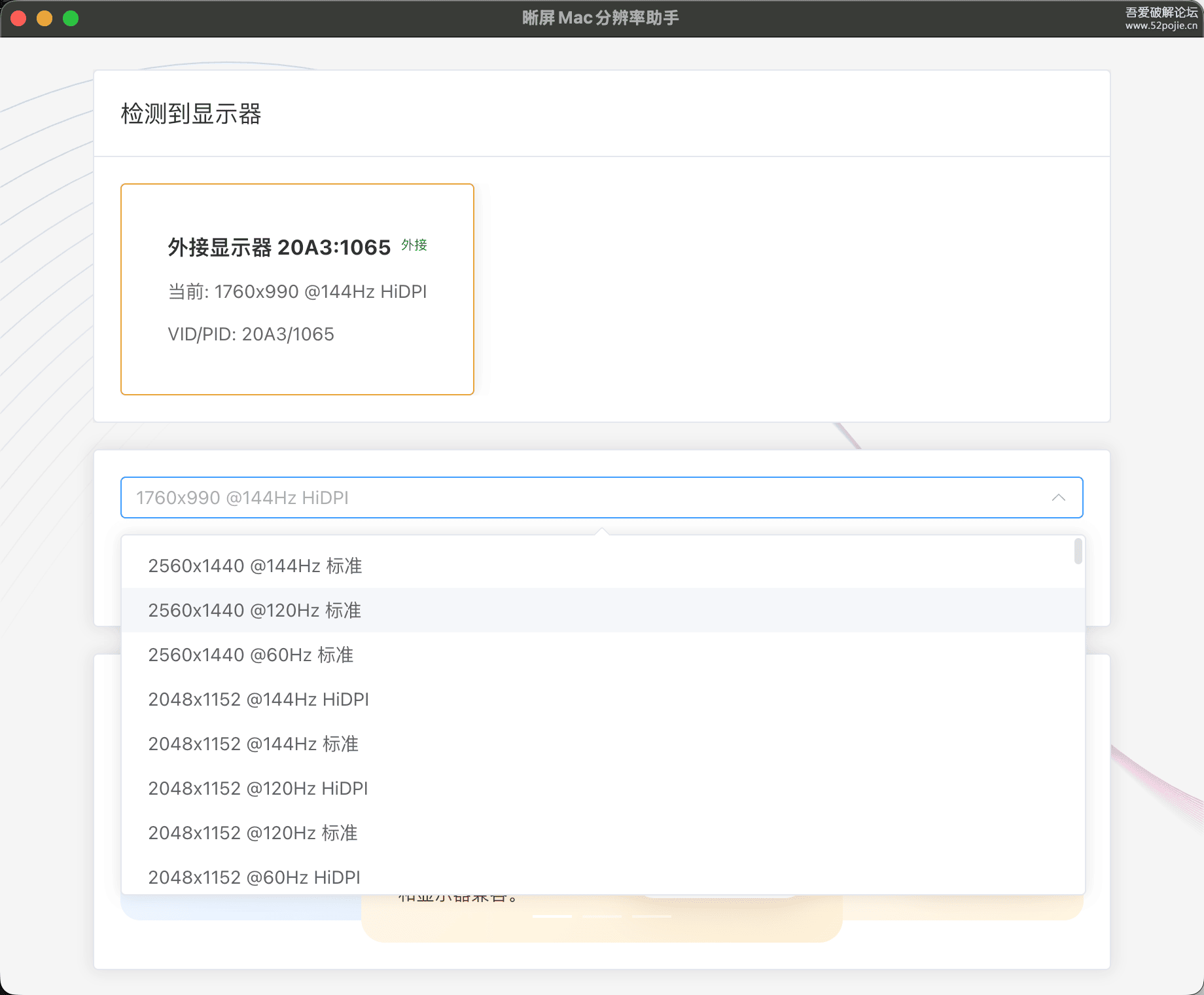 软件通过 Swift 调用 CoreGraphics 框架,能精确读取每个显示器的: